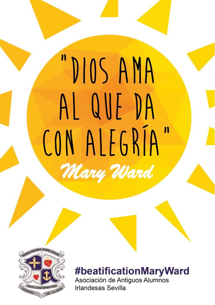 Hoy le pedimos a Dios, a través de Mary Ward que nos enseñe a ser desprendidos, a dar sin remordimiento. Si damos lo que nos dan, los demás verán en nosotros a ese Dios que vive en tí, y descubrirán la verdadera alegría que está en dar y no en recibir. Así vivió Mary Ward y, por eso, hoy le pedimos a ella que nos enseñe a vivir así.